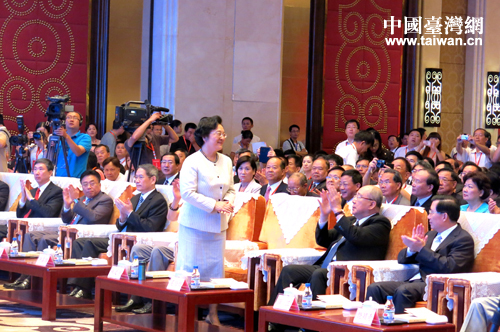 全國(guó)政協(xié)副主席、臺(tái)盟中央主席林文漪在開(kāi)幕式上向出席大會(huì)的各界 及臺(tái)灣鄉(xiāng)親們表示問(wèn)候。(中國(guó)臺(tái)灣網(wǎng)發(fā) 吳藝煤 攝)