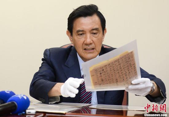 8月27日上午,中國國民黨黨史館在臺北舉辦喬遷暨揭幕儀式,國民黨主席馬英九出席并為黨史館揭幕。中國國民黨黨史館這次搬遷是歷史上第七度搬遷,對外公開超過300萬件以上珍貴史料。圖為馬英九參觀孫中山相關(guān)書信等珍貴史料。中新社發(fā) 劉震 攝