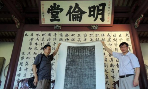 兩岸首次聯合舉辦“清代臺灣進士專題展”將于2013年9月18日在臺南揭幕,來自北京孔廟和國子監博物館復制碑帖于16日在臺南孔廟明倫堂率先亮相,見證科舉制度在臺灣的歷史。(北京市臺聯供圖)