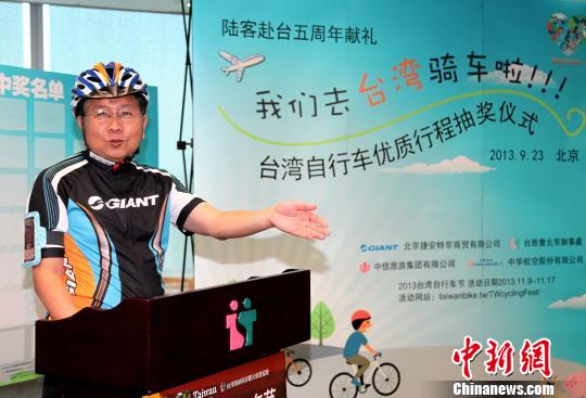 臺灣海峽兩岸觀光旅游協會北京辦事處與臺資企業北京捷安特公司23日舉辦“我們去臺灣騎車啦——自行車優質行程抽獎活動”,38位幸運的大陸民眾獲獎,將于11月10日赴臺免費參加“臺灣優質西線8日游”,享受在日月潭騎行自行車(單車)并欣賞美麗風光的寶島之旅。