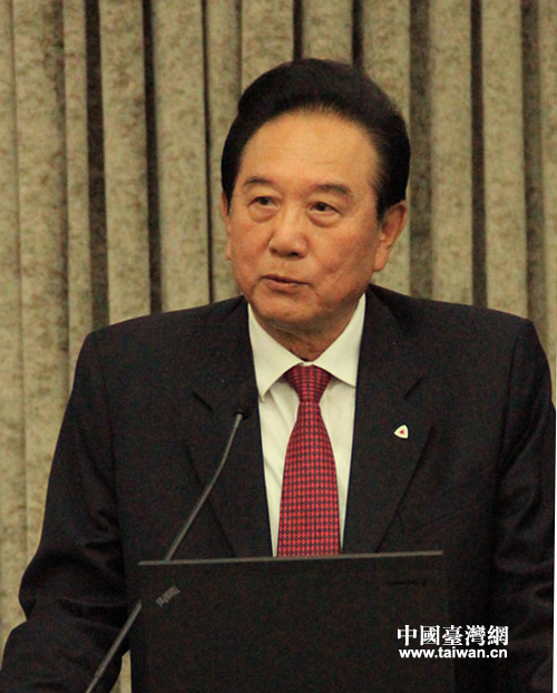 海協會前會長陳云林在“兩岸產經合作與創新發展論壇”上致辭。(中國臺灣網 扶海濤 攝)