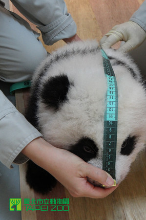 動物園發言人石芝菁表示,相較于剛出生時的嬌小體型,現在的圓仔已經讓人無法一手掌握,幫牠測量頭圍或腹圍時,保育員要放長一段皮尺才夠用。