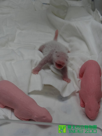 5天大的圓仔與橡膠大貓熊玩偶作對比(圖片取自臺媒)