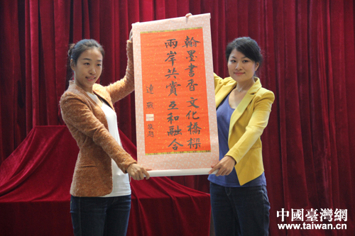 中國國民黨榮譽(yù)主席連戰(zhàn)先生專門為本次座談會(huì)題詞:翰墨書香 文化橋梁 兩岸共賞 互和融合。(中國臺(tái)灣網(wǎng) 王怡然 攝)