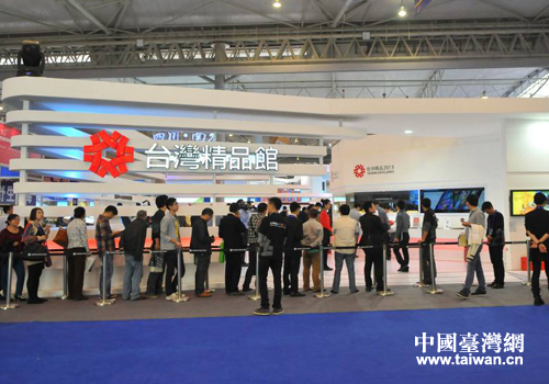 四川省臺辦、省博覽事務局、省貿促會、省商務廳、成都市臺辦、成都市臺協、臺灣貿易中心等單位有關負責人等應邀出席并為臺灣精品館開館剪彩。來川出席2013中國西部海峽兩岸經貿合作交流會的臺灣嘉賓參加了開館儀式并參觀西博會場館。(中國臺灣網、四川省臺辦聯合報道)