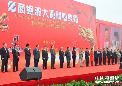 11月2日,長沙武廣新城,臺商總部大廈正式奠基。圖為奠基典禮現場。