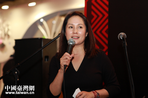 臺灣民意代表高金素梅向觀眾推介“部落行銷”產(chǎn)品。(中國臺灣網(wǎng) 王偉 攝)
