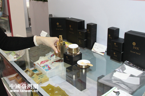 館內展出的男性護膚品。(中國臺灣網 郭慶娜 攝)