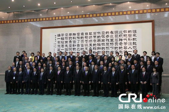 中共中央政治局常委、全國政協(xié)主席俞正聲在釣魚臺國賓館會見參加首屆海峽兩岸媒體前瞻論壇的兩岸媒體代表。(來源:國際在線 攝影 李琳)