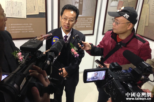 《兩岸關系》雜志社法人代表、副社長鐘河林接受兩岸媒體采訪。(劉麗華攝)