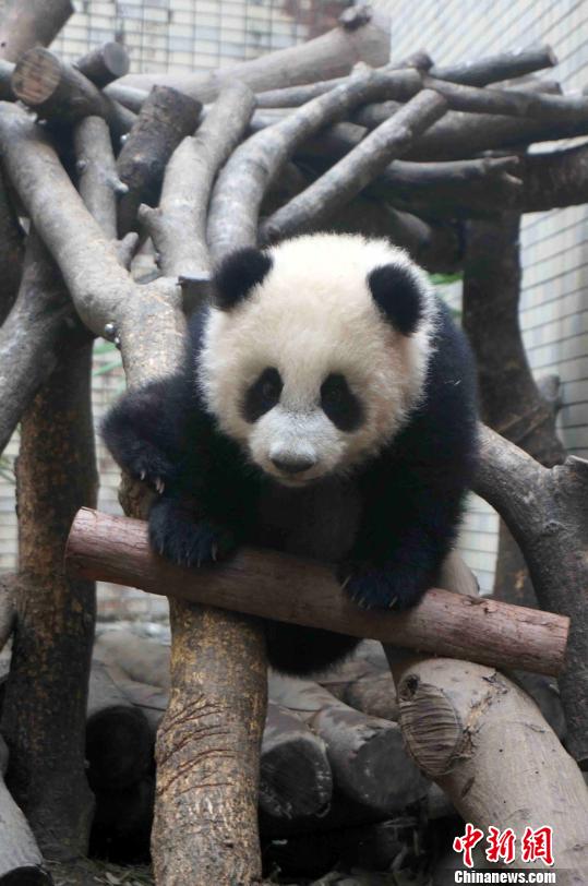 臺(tái)北市立動(dòng)物園5日向記者提供了一張未曾發(fā)表的照片:日前“圓仔”站直身子,似乎在和媽媽“圓圓”說(shuō)“悄悄話”。另一張則是圓仔5日爬樹(shù)干、練“單杠”的照片。(記者 董會(huì)峰 葉小剛)