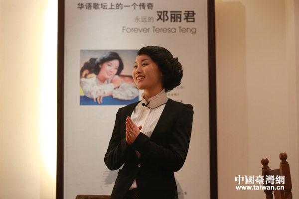 換上黑色西服工裝的楊靜職業干練。為客人講解鄧麗君生平事跡、音樂故事,是楊靜工作的一部分。在北京工作4年,楊靜成長了很多,從一個剛走出學校大門,毫無社會經驗的女大學生,變身為現在這樣一個從容大方的職場女性,楊靜說自己“變化巨大”。 (中國臺灣網 于斯文 攝)