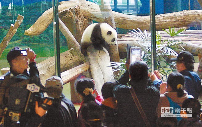圓仔6日正式亮相第一天,臺北動物園貓熊館內擠滿排隊人潮
