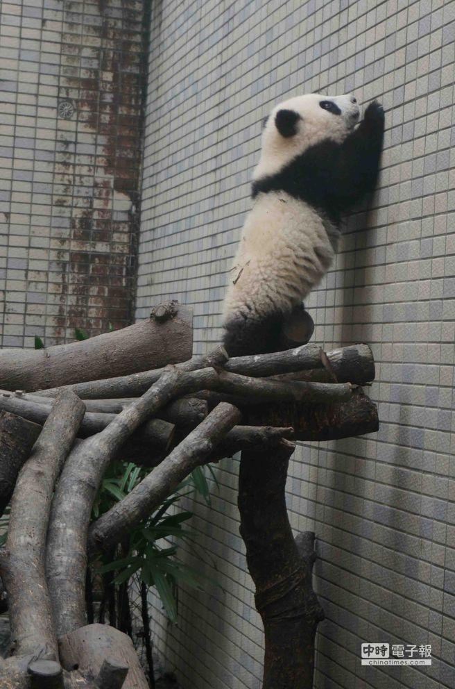 圓仔開工第一天,不怕生的圓仔早已蓄勢待發,透早就在戶外練爬,準備大秀牠苦練多時的“鐵人三項”
