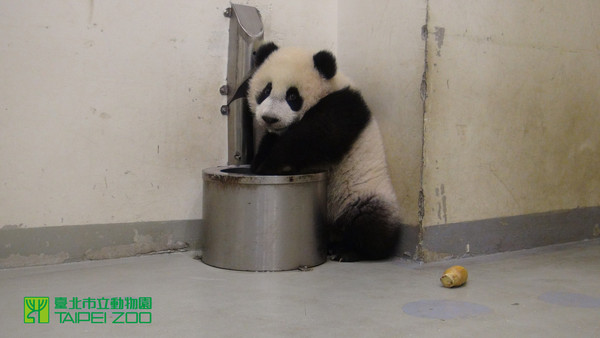 圓仔昨(6)日上午9時首次“上班”見客,撐了1個小時左右便呼呼大睡;直到下午5時10分下班,半夢半醒的圓仔被保育員抱走,揮揮小肥腿和大家說再見。回到欄舍,圓仔伸展一下四肢,打個哈欠,便睡眼惺忪地去找“水盆君”。