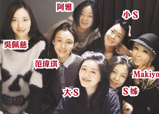 以大小S領銜的“七仙女”日前聚會,大S與吳佩慈兩位準媽媽素顏亮相,體態略顯豐腴。(微博截圖)