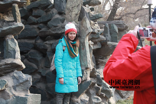 臺灣女學(xué)生在特色的林巡山石前合照(中國臺灣網(wǎng) 楊旋 攝)