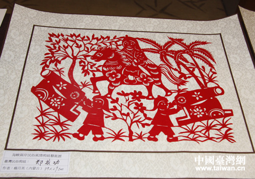 前門大街上年味濃濃的剪紙作品。(中國臺灣網(wǎng) 郭慶娜 攝)