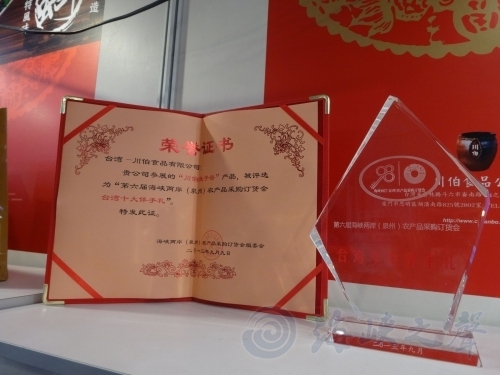 臺灣川伯本名劉新川,參加多屆海交會了,沒有一屆落下。川伯專做中國最美味的古早味“蔭豆豉”,他的“川伯萌豆豉”早已名揚海峽兩岸。川伯祖籍山東萊陽,父親是大陸人,母親是臺灣人。“正像我的父母一樣,現在大陸的新娘可以嫁到臺灣,臺灣新娘也可以嫁到大陸,兩岸早就是一家!倍嗄陙硗趦砂,川伯深深體會到“兩岸一家親”,自己也像福州這邊的老顧客朋友們一樣,每年都期待再度的重逢,期待那一份朋友的情誼和兄弟般的親情互動。