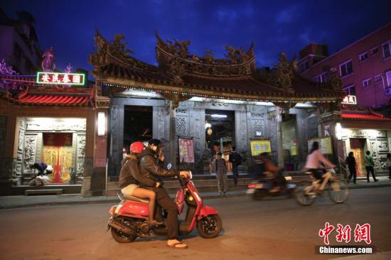 臺灣寺廟林立,信徒眾多。圖為夜幕下的淡水福佑宮。中新社發(fā) 趙雋 攝