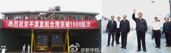 習(xí)近平1日來(lái)到平潭海峽高速客運(yùn)碼頭旅檢大樓,這里可乘船直航臺(tái)灣!敖(jīng)常乘船往返?”“船開(kāi)得怎么樣?”……他和幾位臺(tái)灣旅客交談,祝一位在平潭“快樂(lè)創(chuàng)業(yè)”的臺(tái)胞“事業(yè)發(fā)達(dá)”。聽(tīng)說(shuō)幾位旅客來(lái)自新疆,他說(shuō),你們是看完大漠風(fēng)光看海峽風(fēng)光。