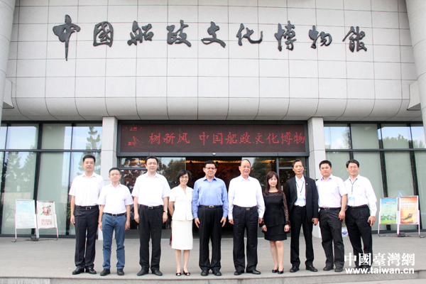 24日下午,海協會會長陳德銘夫婦與海基會董事長林中森夫婦一起在福州馬尾參觀了中國船政文化博物館,圖為一行人在博物館門口合影留念。(中國臺灣網 張潔 攝)