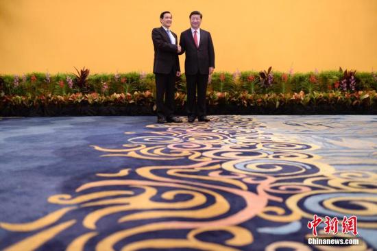 11月7日下午,兩岸領導人習近平與馬英九在新加坡香格里拉酒店歷史性會面。 中新社記者 廖攀 攝