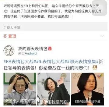 目前,在大陸網(wǎng)友成千上萬種“表情包”(而且圖片和語言還都不重樣)的轟炸下,部分內(nèi)心脆弱的臺灣網(wǎng)民被嗆得直接找Facebook網(wǎng)站方面舉報,稱大陸網(wǎng)友的“表情包”太粗暴;也有一些內(nèi)心堅強(qiáng)的臺灣網(wǎng)民,則選擇“盜用”大陸網(wǎng)友的圖片素材,重新制成他們的表情包進(jìn)行“還擊”…