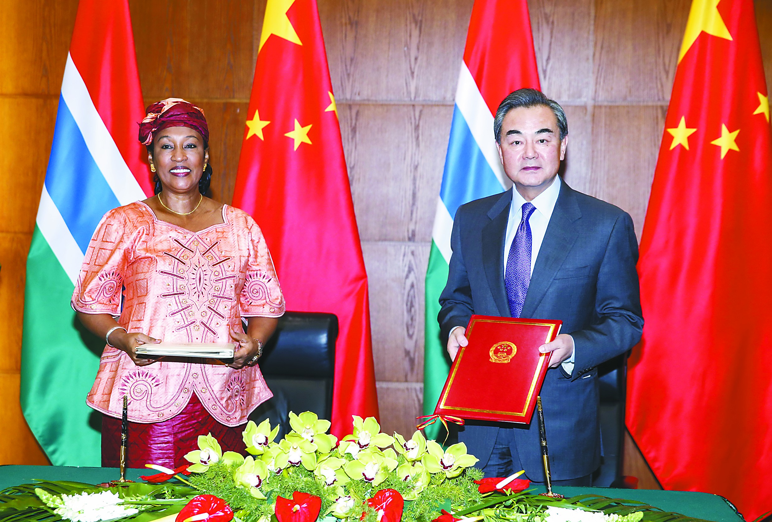 17日,中國外交部長王毅與岡比亞外長蓋伊在北京簽署聯合公報,宣布兩國恢復大使級外交關系。