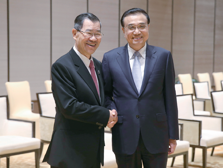 24日,國務院總理李克強在海南博鰲會見兩岸共同市場基金會榮譽董事長蕭萬長一行。中新社發