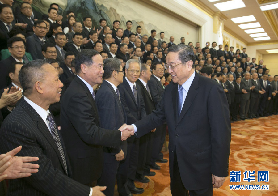 中共中央政治局常委、全國政協主席俞正聲25日在人民大會堂會見了參加全國臺灣同胞投資企業聯誼會第四屆會員代表大會的代表。