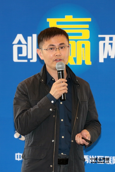 在昨日舉行的兩岸青創產業園區發展研討會上,復客中國昆山兩岸青創園總經理卓強在分享兩岸創業園區成功經驗。(中國臺灣網 于斯文 攝)