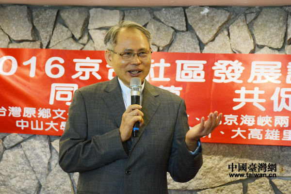 7日,2016京臺社區發展論壇新聞發布會在高雄中山大學舉行,臺灣原鄉文化暨社區發展協會理事長蘇進強在發布會上發言。(中國臺灣網 朱煉 攝)