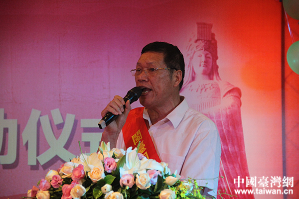 “第八屆海峽論壇 閩臺同名村鎮續緣之旅”啟動儀式上,來自泉州市泉州港前黃鎮鳳山村連氏家族的代表連育華發言。(中國臺灣網 蕪同 攝)