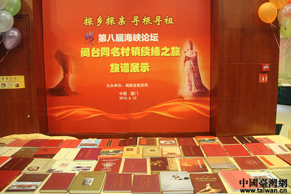 “第八屆海峽論壇 閩臺同名村鎮續緣之旅”啟動儀式在廈門舉行,圖為現場展示的族譜。(中國臺灣網 蕪同 攝)