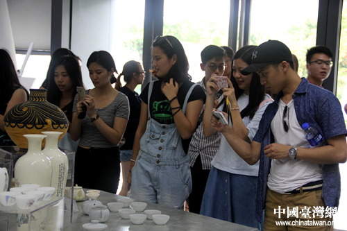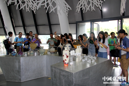兩岸大學(xué)生參觀位于旺山村內(nèi)的美食文化創(chuàng)意展覽。(中國臺(tái)灣網(wǎng)記者 李杰 攝)