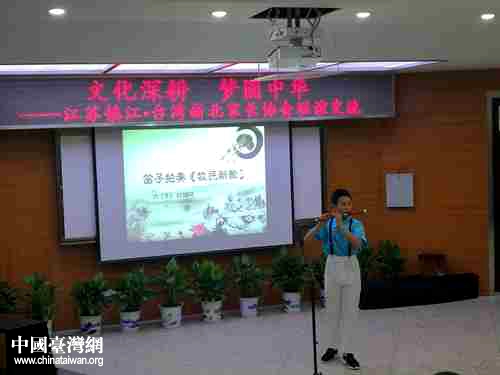 鎮江中華路小學生在交流會上展示笛子演奏。(鎮江市臺辦 章邦勇 攝)