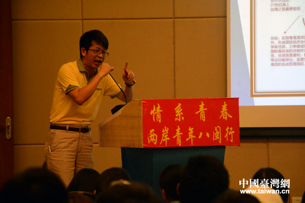 來臺灣的導師劉漢良向兩岸青年詳解扶持政策及創業知識。(中國臺灣網 吳怡 攝)