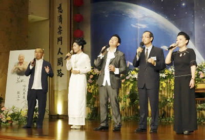 莊奴之子黃浩然(左一)、學(xué)生高原(左三)等人以歌聲懷念莊奴。(本報(bào)記者 張 盼攝)