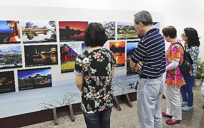 圖為兩岸嘉賓參觀中華歷史名樓文化圖片展。張盼攝