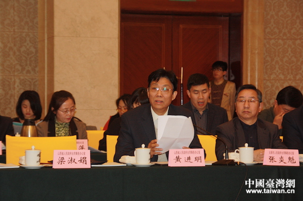 山西省臺辦主任黃進明在簽約儀式上致辭。(中國臺灣網 齊昕 攝)