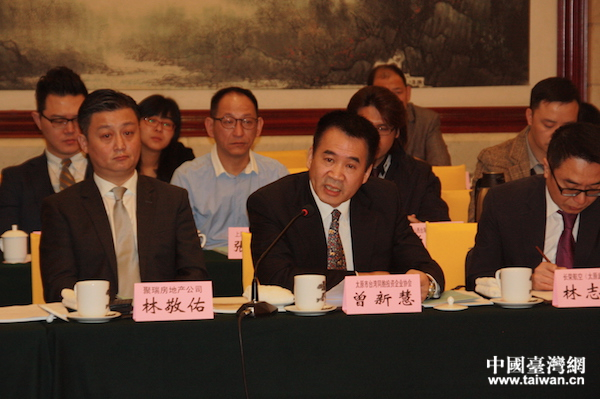 全國臺灣同胞投資企業聯合會副會長、太原市臺灣同胞投資企業協會會長曾新慧在簽約儀式上發言。(中國臺灣網 齊昕 攝)