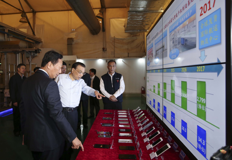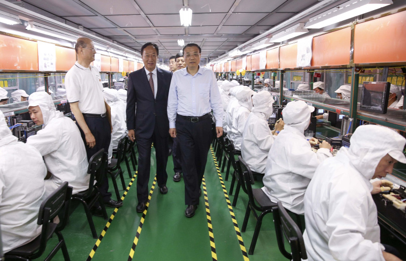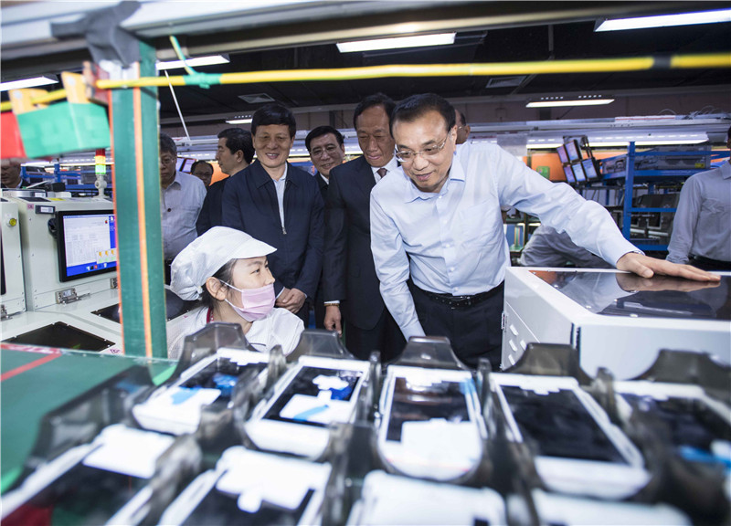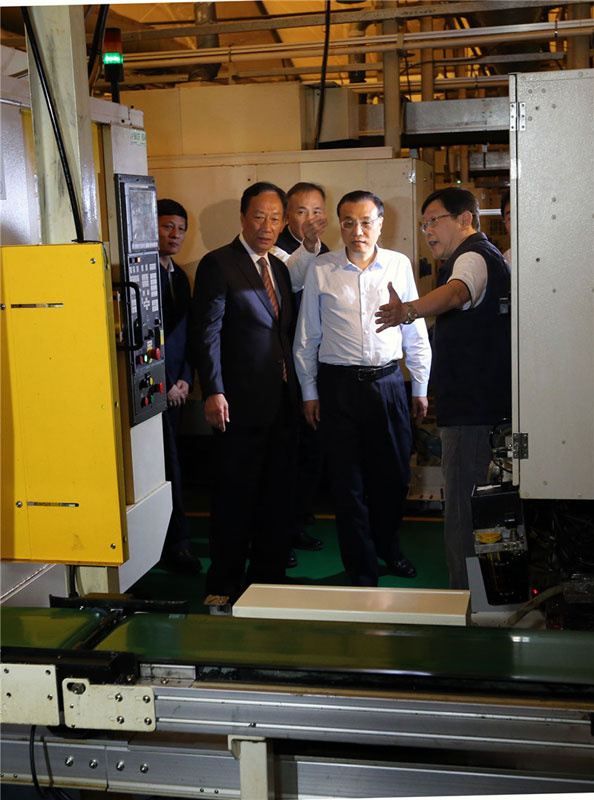 【李克強(qiáng)勉勵(lì)富士康員工珍視兩種精神】李克強(qiáng)9日考察鄭州富士康科技園,先來(lái)到富士康全球首個(gè)智能生產(chǎn)無(wú)人車間,隨后走進(jìn)2000多人的精密組裝測(cè)試車間?偫黻P(guān)切詢問(wèn)工人收入和防護(hù)等情況。他最后寄語(yǔ)這里的員工,投身先進(jìn)制造業(yè)尤其要珍視兩種精神:一是精益求精的工匠精神,二是永不止步的創(chuàng)客精神。