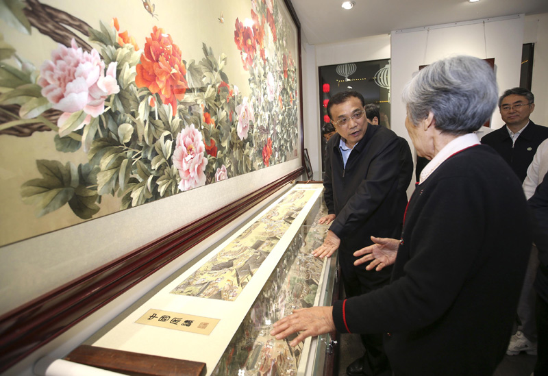 【李克強(qiáng)鼓勵(lì)82歲“繡娘”:讓優(yōu)秀傳統(tǒng)文化代代相傳】李克強(qiáng)8日晚來(lái)到開封七盛角民俗文化街,在王素花汴繡館長(zhǎng)時(shí)間駐足。82歲的王素花多年繼承創(chuàng)新宋代傳統(tǒng)刺繡工藝,是汴繡領(lǐng)軍人物?偫碜屑(xì)觀賞后稱贊她用色“多而不雜”,技藝“爐火純青”。他鼓勵(lì)老藝人弘揚(yáng)工匠精神,讓優(yōu)秀傳統(tǒng)文化代代相傳。