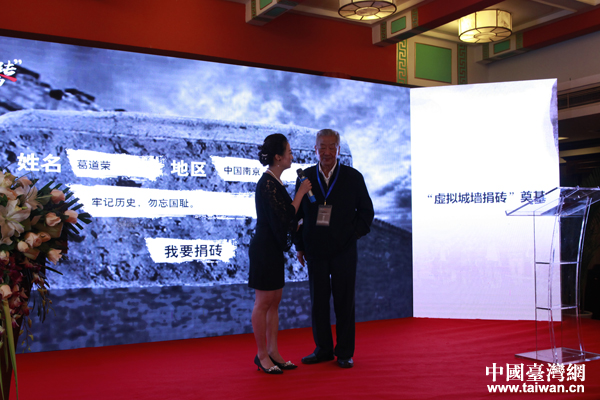 南京大屠殺幸存者葛道榮在“虛擬城墻”上捐出了第一塊緬懷逝者的“磚”(中國臺灣網(wǎng) 張亞靜 攝)