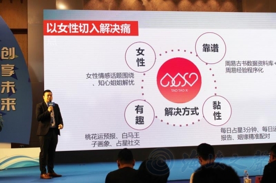 桃桃喜是一支來自臺灣的海歸團隊,創(chuàng)始人擁有15年的占卜經(jīng)驗,致力于將中國占卜與智能運算結(jié)合,提供專屬女性的桃花占卜娛樂服務(wù),透過付費程序與品牌合作達到流量變現(xiàn),目標成為中國的ZAPPALLAS。目前的運營情況是:月瀑光流量2000萬+。