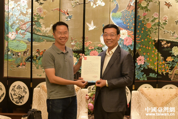 7月10日下午,機電商會臺北辦事處主任李榮民會見了臺灣自造者協會理事長洪堯泰一行,雙方就推動兩岸青創人員交流合作、創業就業等共同關心的話題交換了意見。(中國臺灣網發)