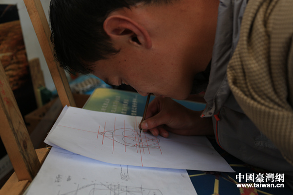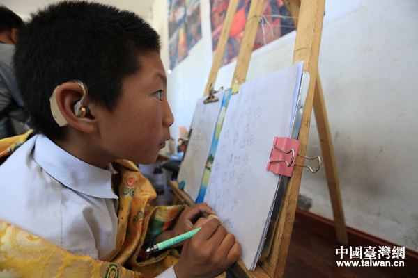 學習唐卡繪畫的學生。(中國臺灣網 李寧 攝)