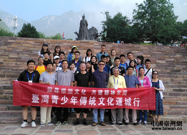 臺灣青少年參訪團在歷山腳下合影留念(中國臺灣網 王文英 攝)