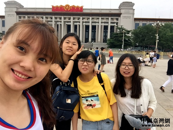 韓笑、侯藝玲、陳寶如、王依凡游覽天安門廣場。(中國臺灣網發)